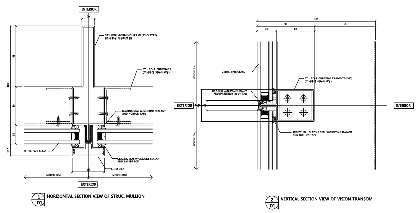 - 수직프레임은 T형태 이고 수평 프레임은 BOX 형태로 구성된 타입